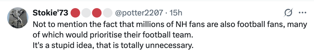 “We have just announced a series of changes for 2026 and we haven’t at the moment agreed anything else for future years. We’re at the start point of considering a range of options and I don’t think this is anything more than a concept at this particular stage. There are obvious pros and cons but I think it is definitely worthy of consideration and exploring further.”